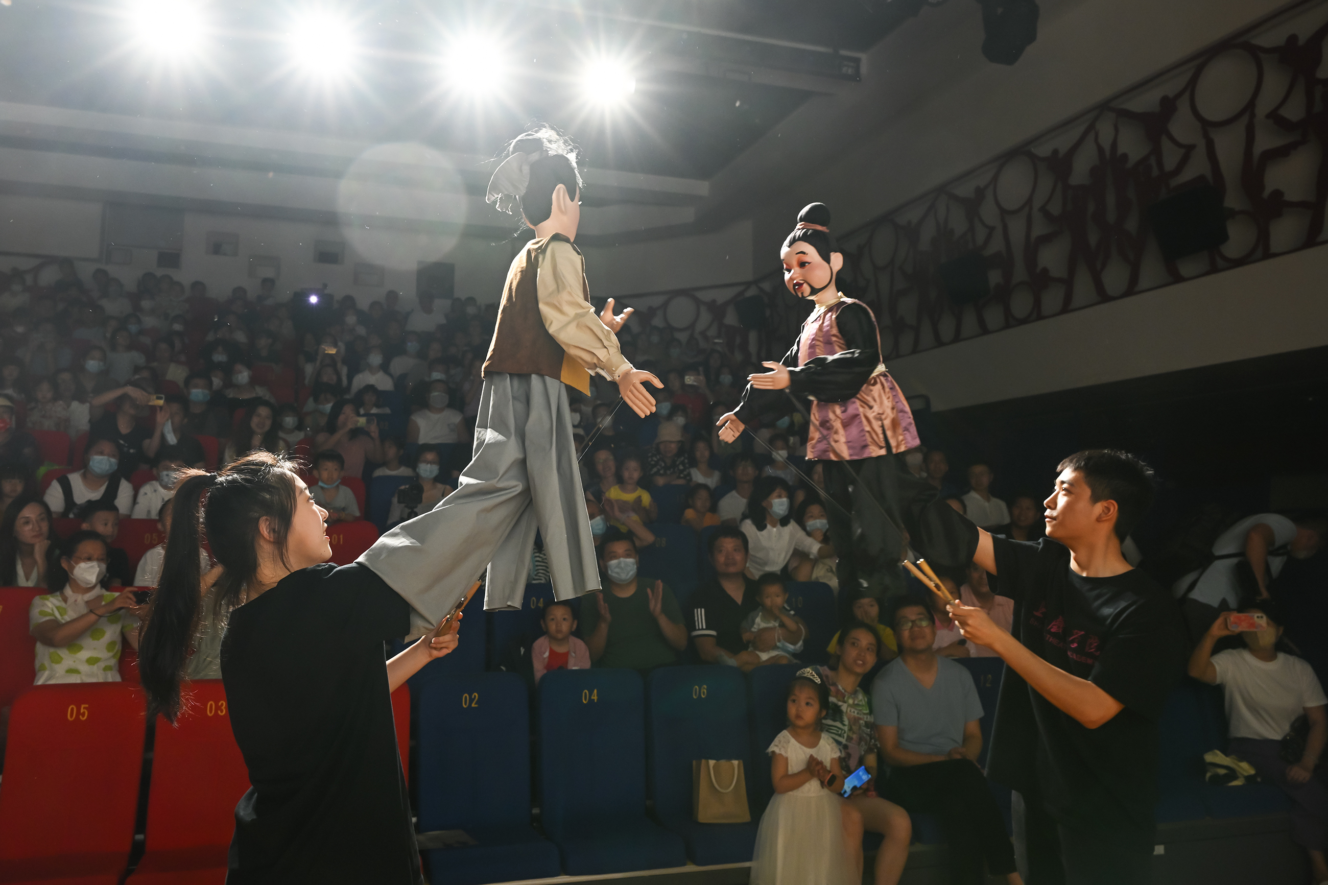 剧中的木偶操控演员皆由上海戏剧学院戏曲学院2021级木偶表演专业学生出演,在木偶演员的操控下,赵溜须、李奉承等木偶角色一举一动生动传神,传统又新颖、轻松诙谐的木偶故事在舞台上活灵活现,现场家庭观众看得不亦乐乎,纷纷点赞。
