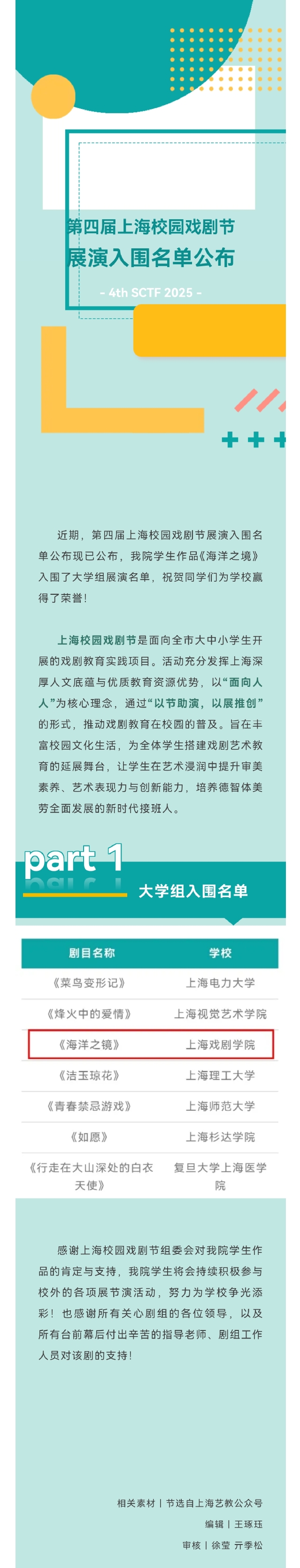 喜报 我院学生作品《海洋之镜》入围第四届上海校园戏剧节展演